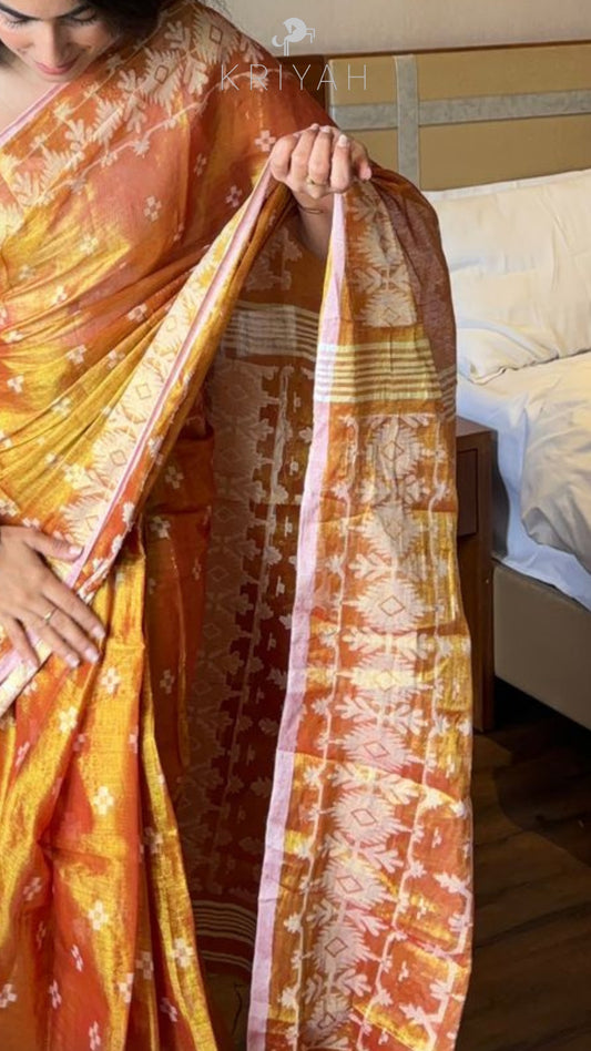 Ombre Weave pure silk dhoti with Angavastram - gold