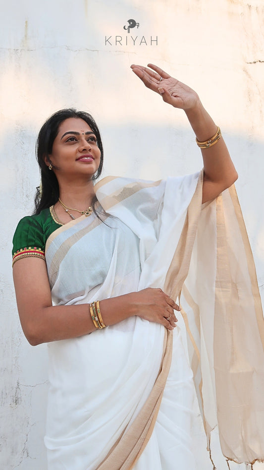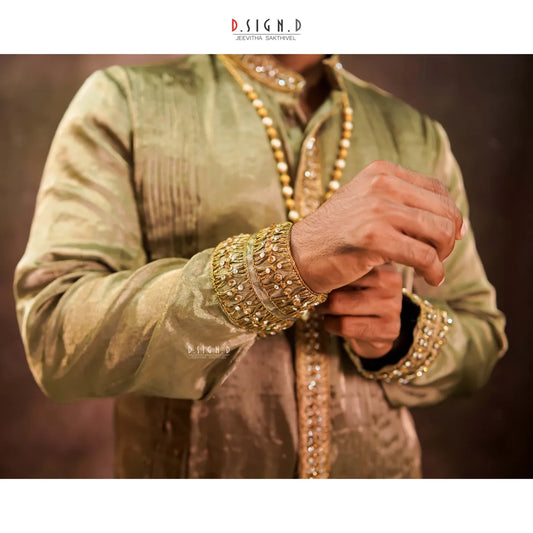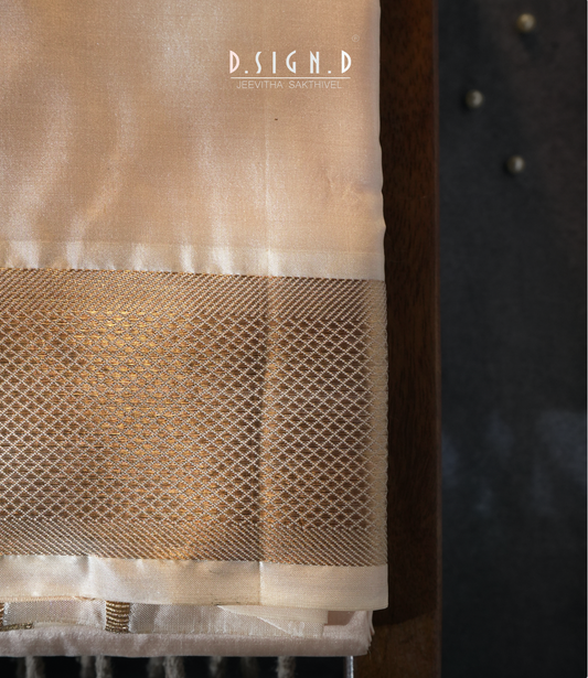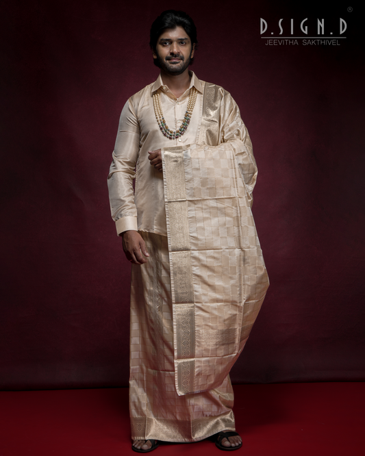 GOLD PATTU KATTAM FINE SILK TISSUE DHOTI SET (Bridal)