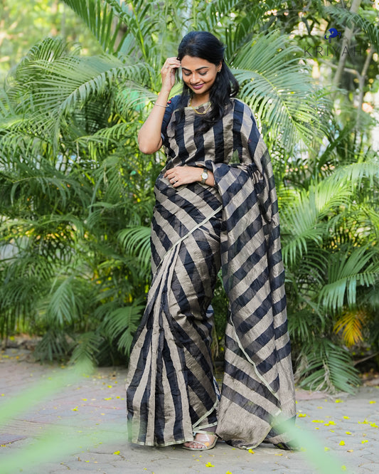 GOLD PURE SILK HANDLOOM STRIPED DHOTI