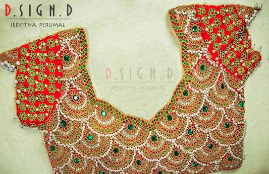 Regular price ₹10,000.00 INRRegular priceUnit price / per₹21,500.00 INRSale price ₹10,000.00 INRRed Jewel work Blouse