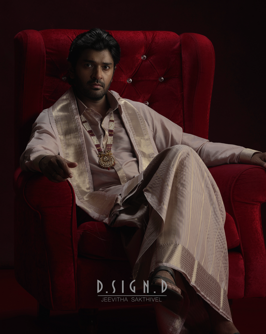 Beige Fine silk dhoti Set - Bridal