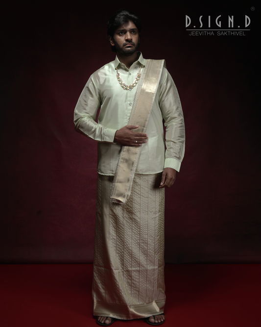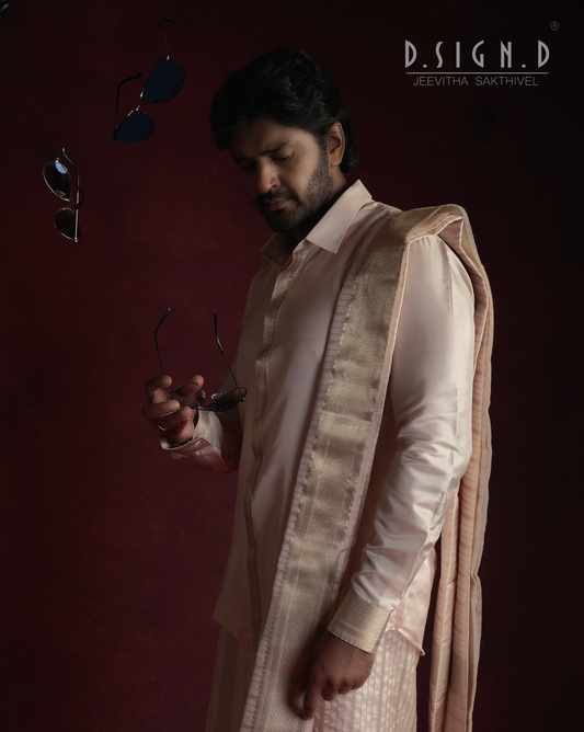 PURE MIX ROSE GOLD SILK DHOTI SET WITH SHIRT