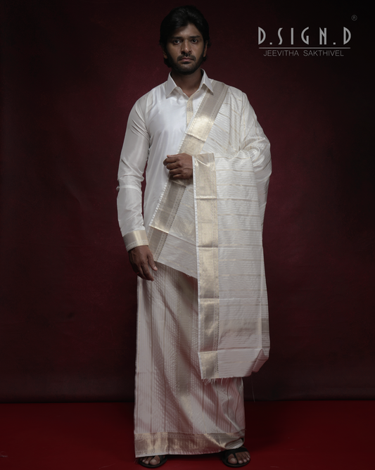 Sandal Semi silk dhoti & Shirt (unstitched)