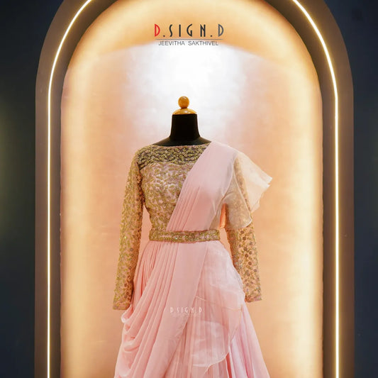 Regular price ₹24,000.00 INRRegular priceUnit price / perSale price ₹24,000.00 INRPink Georgette Ruffle Lehenga