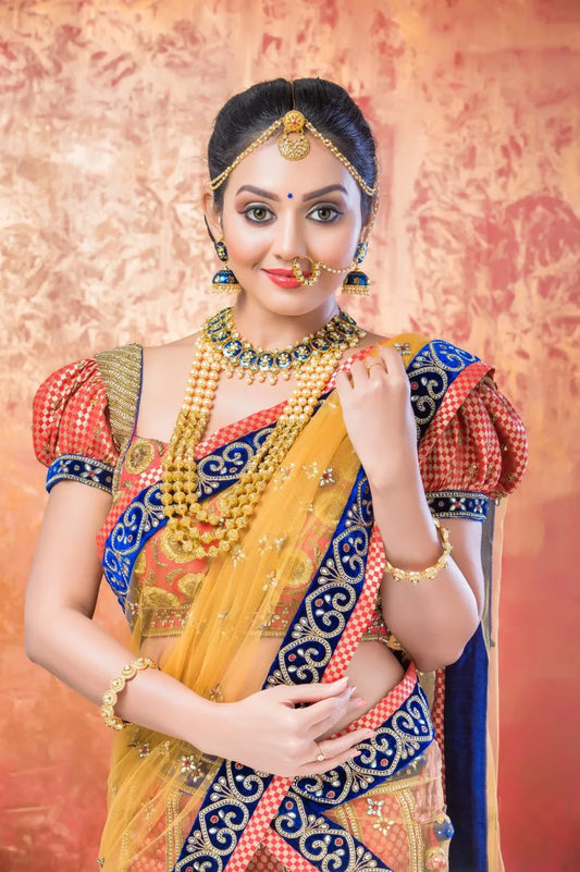 Regular price ₹9,500.00 INRRegular priceUnit price / per₹35,000.00 INRSale price ₹9,500.00 INRPeacock Blue Silk Lehenga