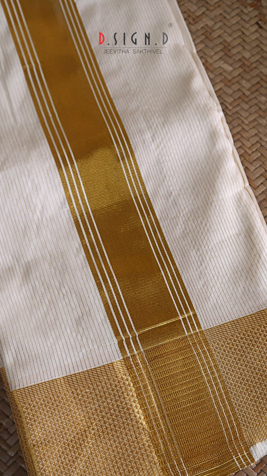 Vastra Gold Pin Stripes Fine silk dhoti Set - Bridal