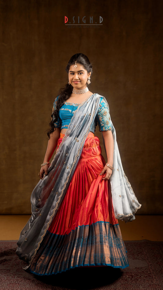 Regular price ₹29,000.00 INRRegular priceUnit price / perSale price ₹29,000.00 INRSalmon Fine Silk Half Saree