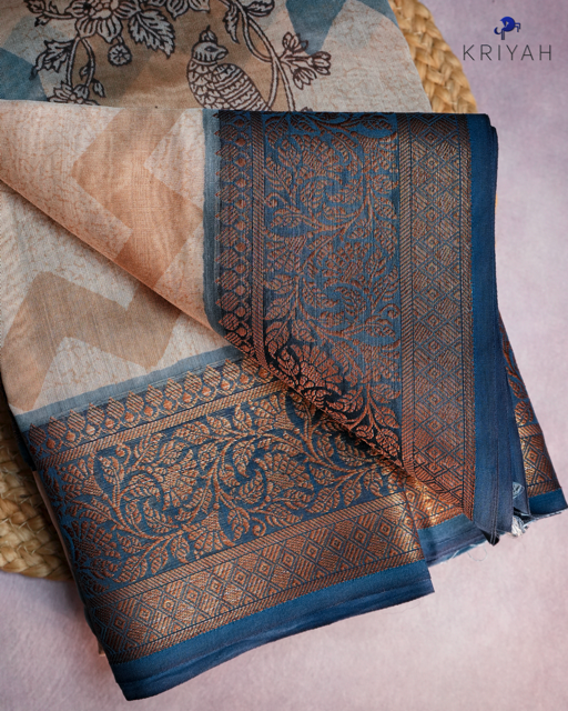 Parrot Chanderi Silk Saree - Brown
