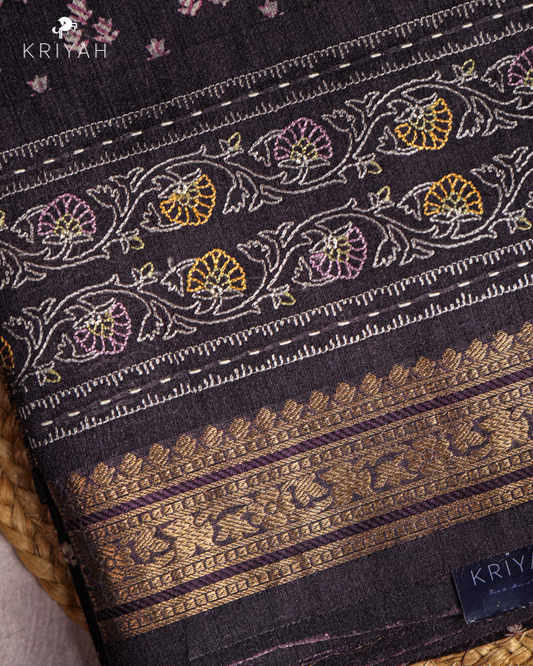 PLUM - FLORAL BUTTI AND ZARI BORDER CHANDERI SILK SAREE