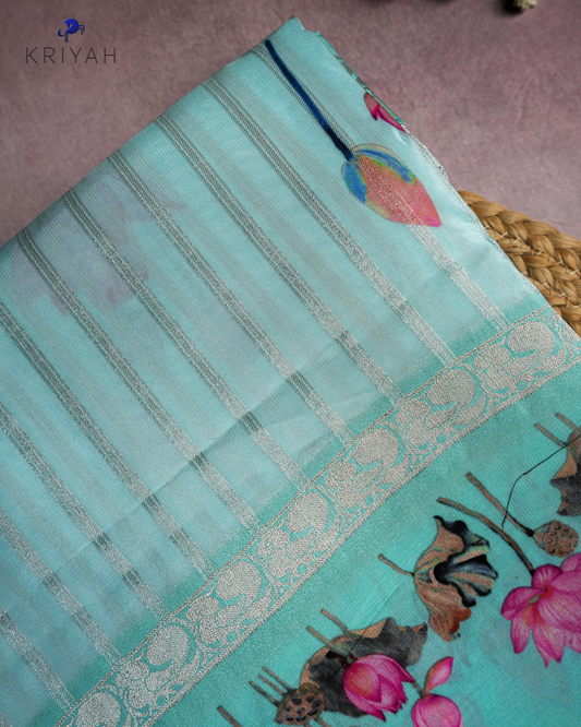 LOTUS PRINTED CREPE SAREE - SKY BLUE