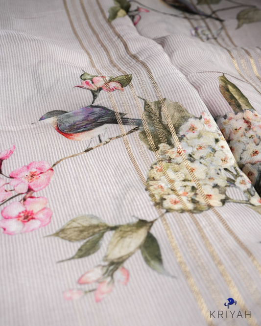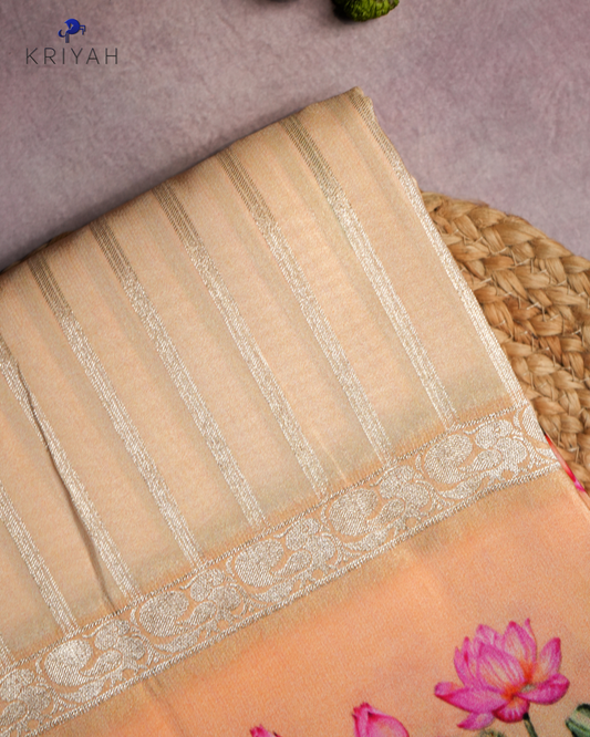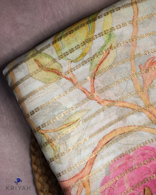 Sold outFLORAL PRINTED CREPE SAREE - TAUPE