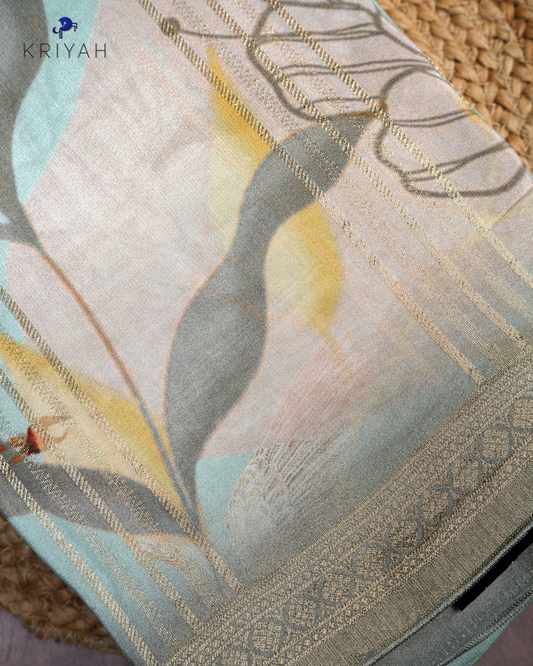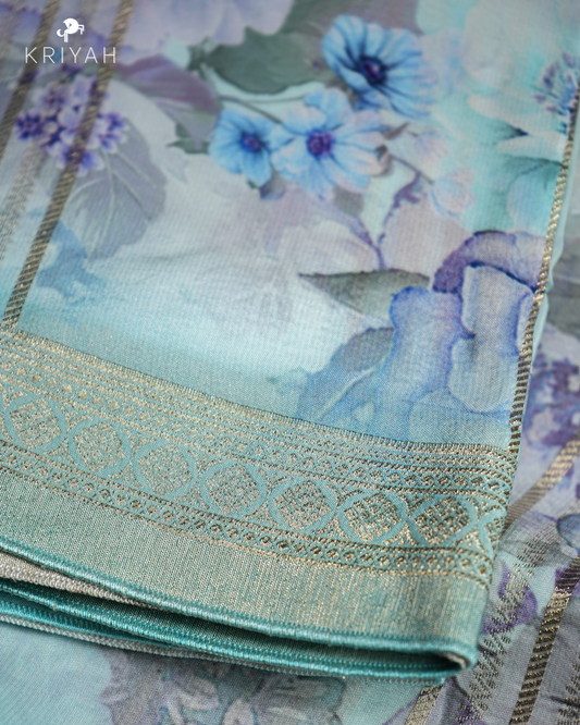 FLORAL PRINTED CREPE SAREE - LIGHT BLUE