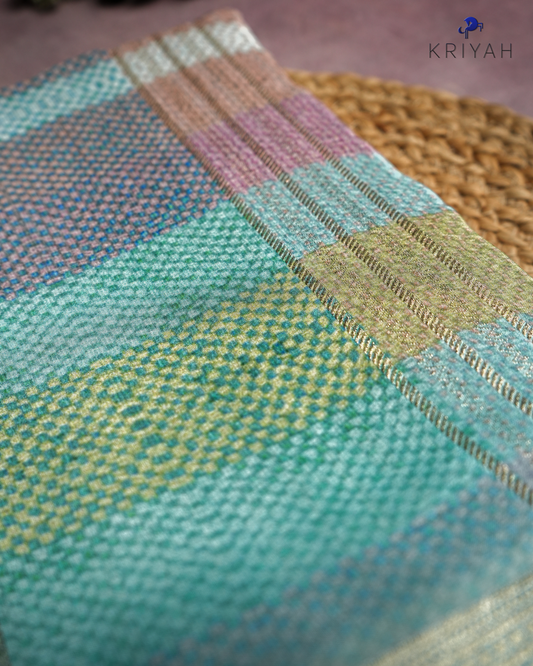 ABSTRACT PRINTED CREPE SAREE - AQUA GREEN