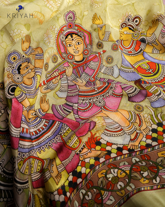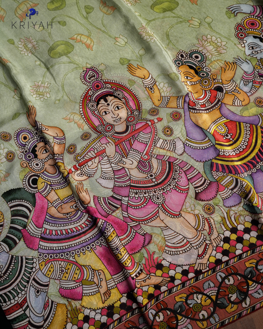 DIGITAL KALAMKARI PRINTED CREPE SAREE - LIME