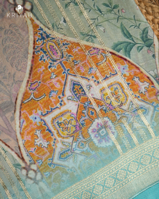 DIGITAL PAISLEY PRINT CREPE SAREE - TEAL