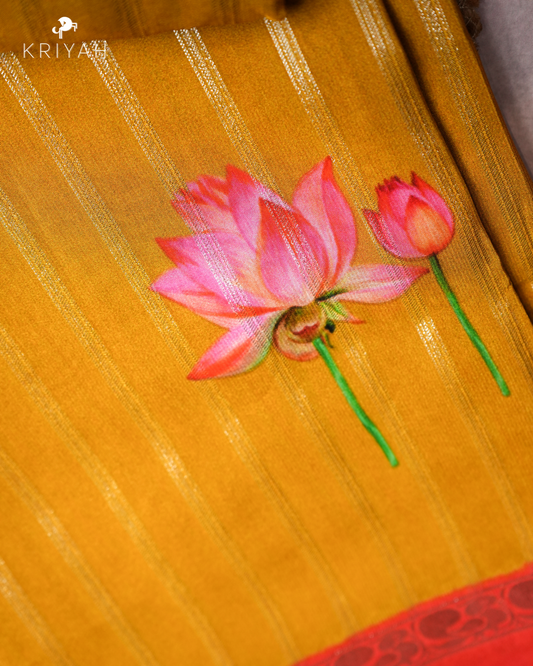 LOTUS PRINTED CREPE SAREE - MUSTARD YELLOW