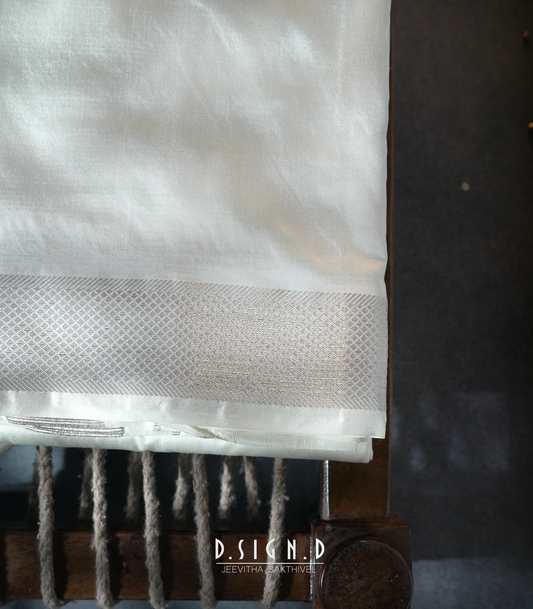 PURE WHITE SILK DHOTI WITH HALF FINE ZARI
