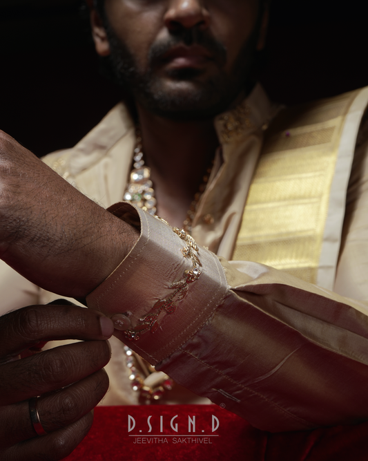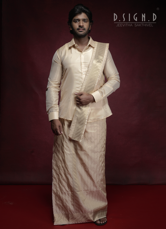 GOLD PATTU KATTAM FINE SILK TISSUE DHOTI SET (Bridal)