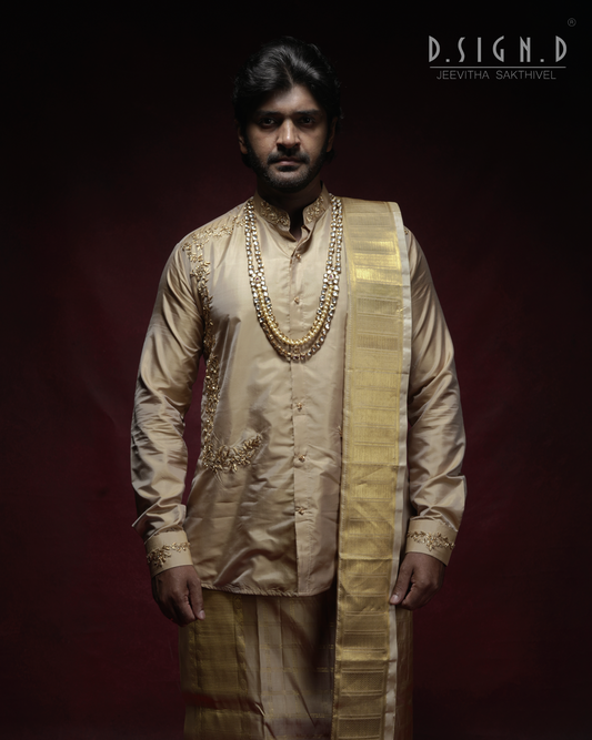 Gold Fine silk dhoti Set - Bridal