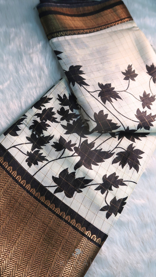 DOLA SILK SAREE WITH FLORAL PRINT BLACK