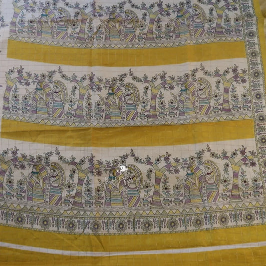 DOLA SILK SAREE WITH KALAMKARI PRINTS - Yellow