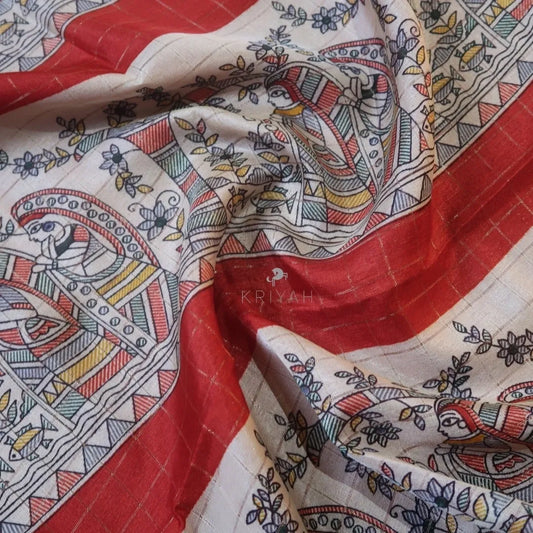 DOLA SILK SAREE WITH KALAMKARI PRINTS - RED