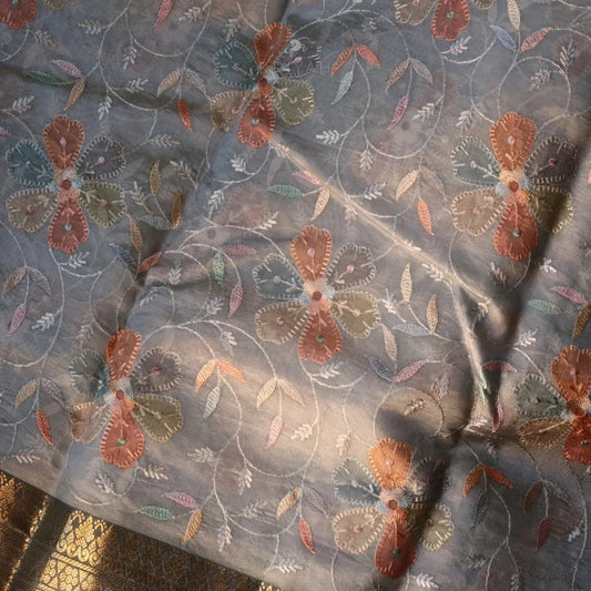 Embroidered Tussar Silk Saree