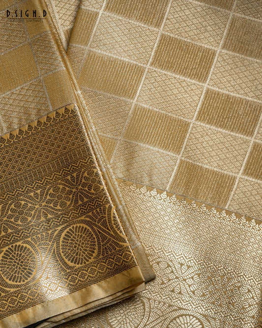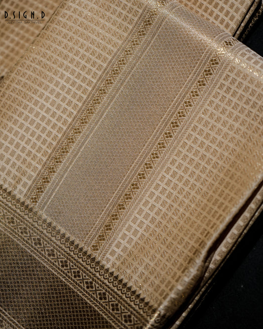 GOLD ZARI CHECK FINE SILK DHOTI SET