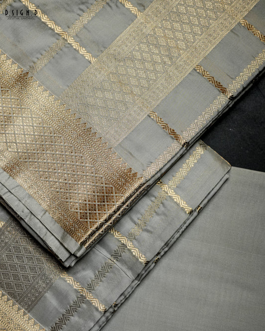 GREY KATTAM FINE SILK DHOTI SET