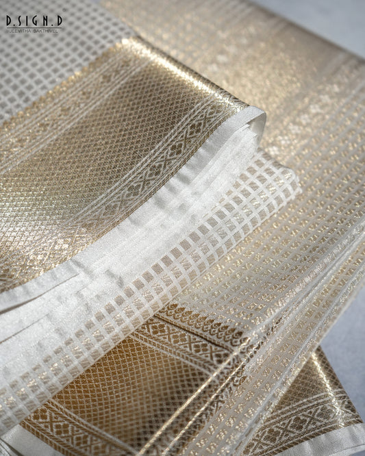 WHITE ZARI CHECK FINE SILK DHOTI SET