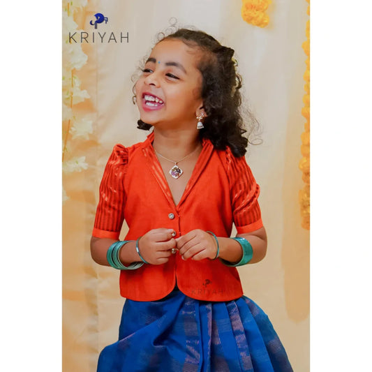 Orange-Blue Kattam Pavadai Set