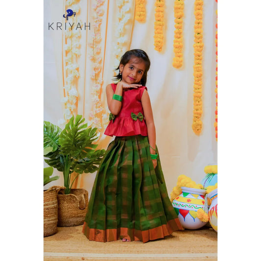 Maroon-Green Kattam Pavadai Set