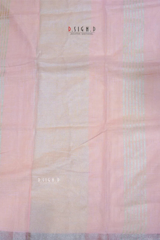 PASTEL PINK SEQUIN FLORAL LINEN COTTON SAREE