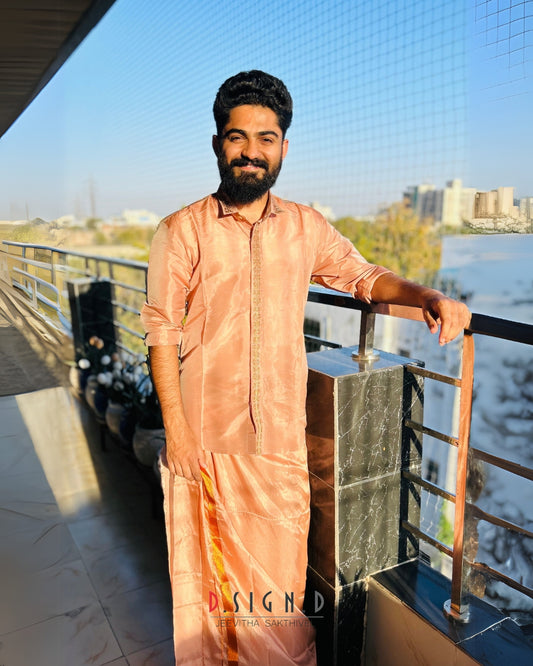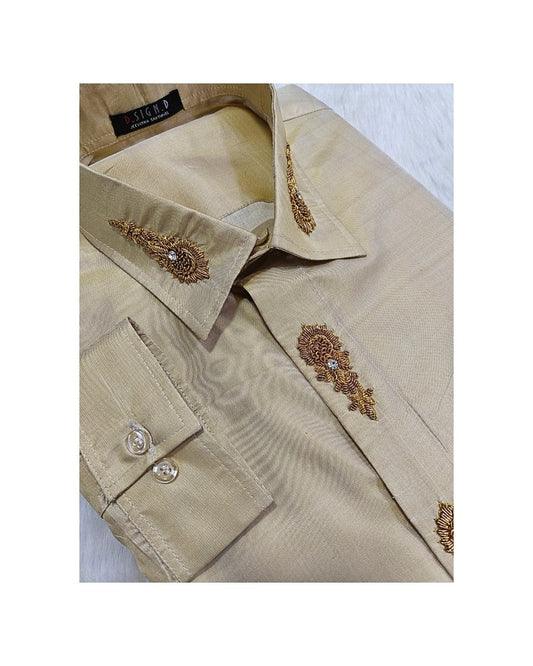 Regular price ₹7,500.00 INRRegular priceUnit price / perSale price ₹7,500.00 INRRose Gold Embroidered fine Silk Shirt