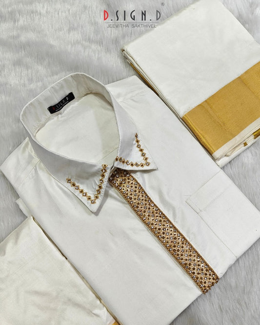 Regular price From ₹8,000.00 INRRegular priceUnit price / perSale price From ₹8,000.00 INRWhite Muhurtham Silk Shirt