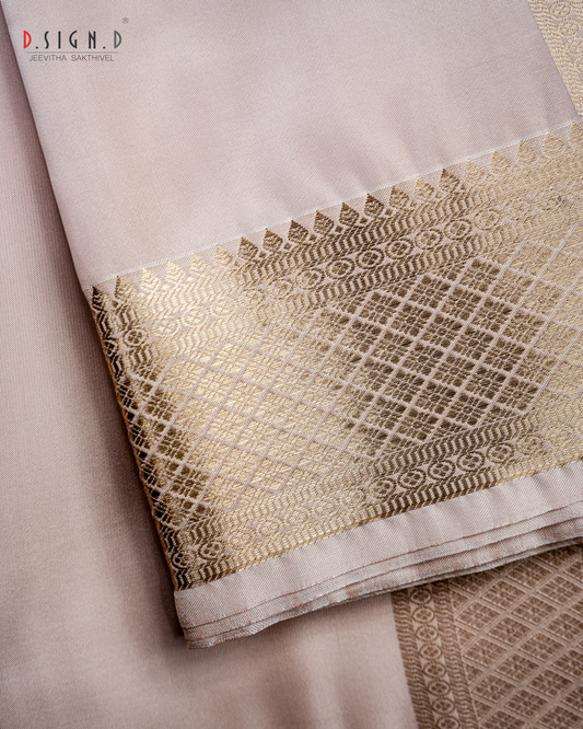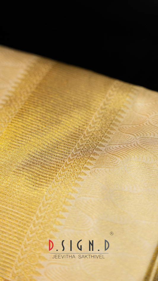 BEIGE TISSUE KATTAM FINE SILK DHOTI SET - BRIDAL