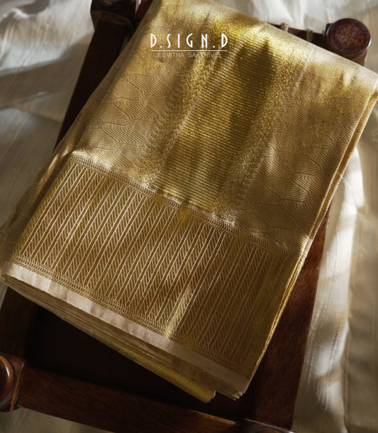 BEIGE TISSUE KATTAM FINE SILK DHOTI SET - BRIDAL