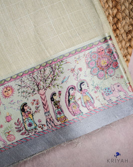 ABSTRACT PRINTED DUPION SILK SAREE - SAND