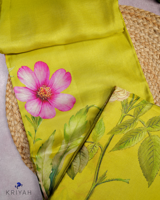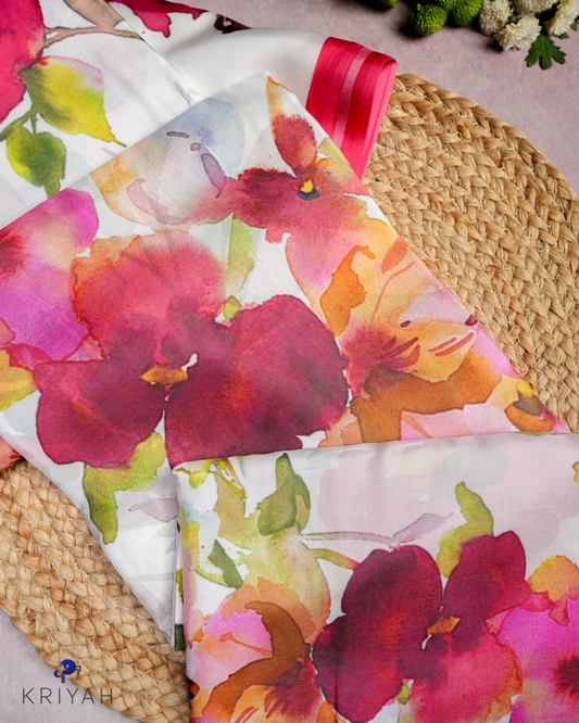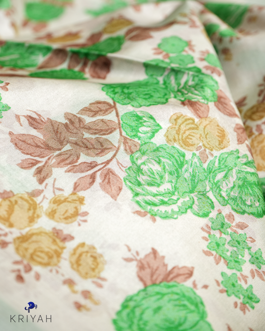 PRINTED SILK SAREE CHINTZ - OFF WHITE