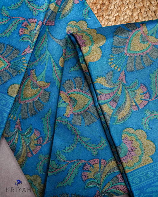 PRINTED SILK SAREE KALAMKARI - BLUE