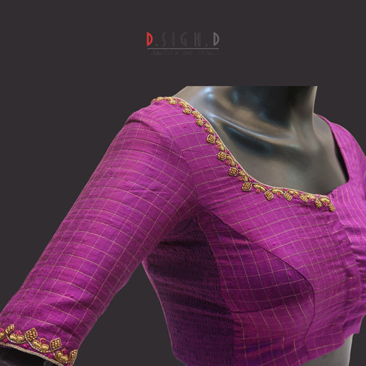 Purple Checked Raw Silk SIze-flex Blouse