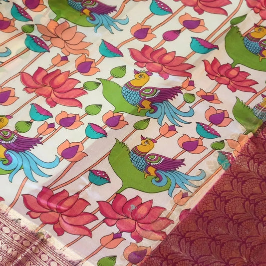 Sold outKALAMKARI PRINTED TUSSAR SILK SAREE