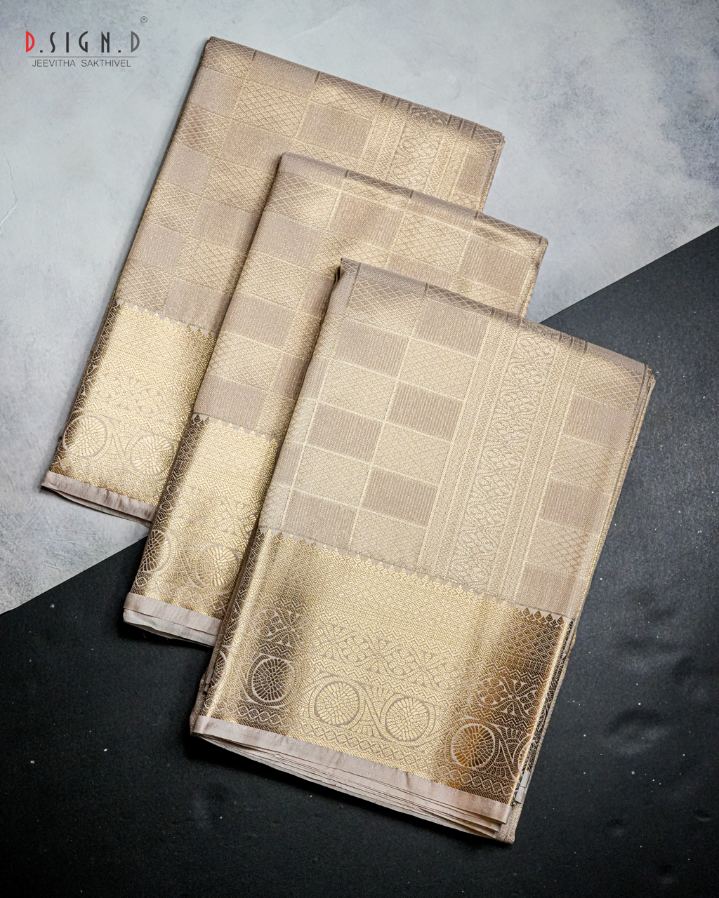 BEIGE TISSUE KATTAM FINE SILK DHOTI SET