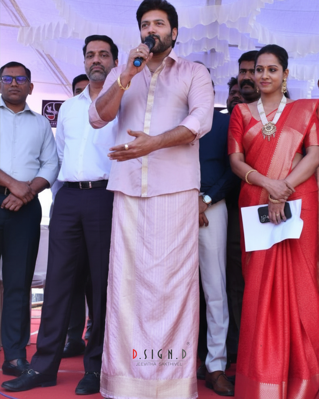 Add a refined touch to your wardrobe with this Bridal fine-Silk Dhoti set, crafted from luxurious fine silk. Its soft texture and Bridal Rose color make it an excellent choice for weddings and festivals.