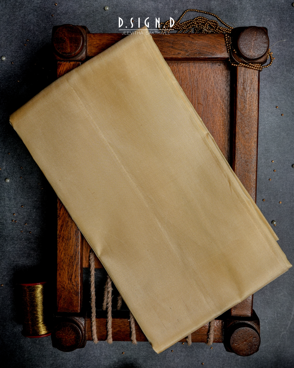 Woven from 100% pure silk, this exquisite ensemble features a soft sandal hue that reflects sophistication and serenity. The smooth, lustrous drape and minimal zari detailing make it ideal for weddings, religious ceremonies, and cultural celebrations.