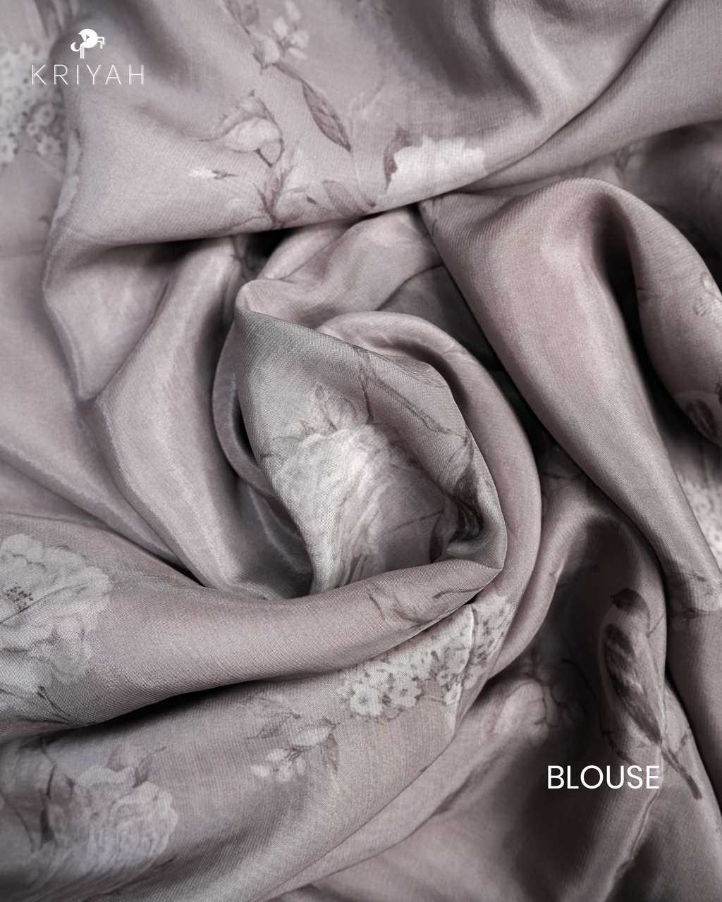 FLORAL PRINTED CREPE SAREE - TAUPE