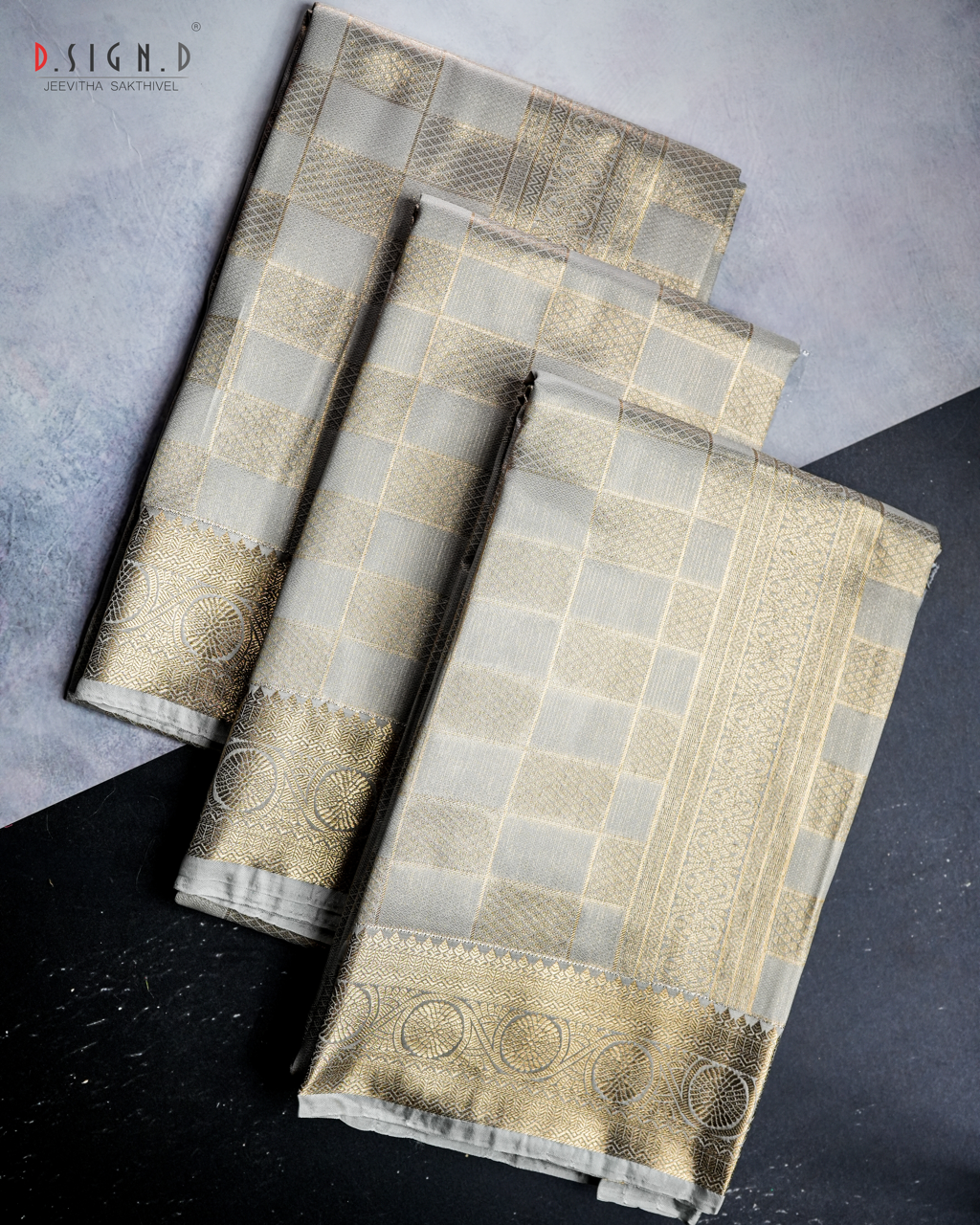 GREY TISSUE KATTAM FINE SILK DHOTI SET