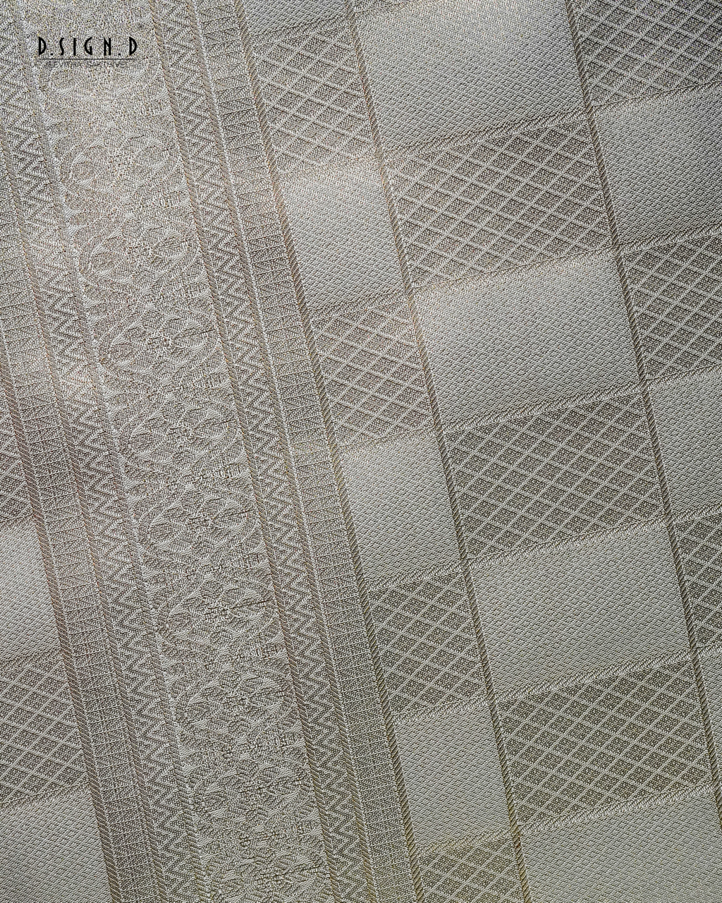 Add an understated luxury to your traditional wardrobe with this Grey Tissue Kattam Fine-Silk Dhoti Set, woven from premium fine silk with a tissue finish. The elegant grey shade, paired with the timeless pattu kattam (checked weave) and ornate zari borders, makes it a refined choice for weddings, temple ceremonies, and festive occasions. Its soft drape and subtle shimmer strike the perfect balance between heritage tradition and modern sophistication, making it an exceptional choice for grooms and special celebrations.