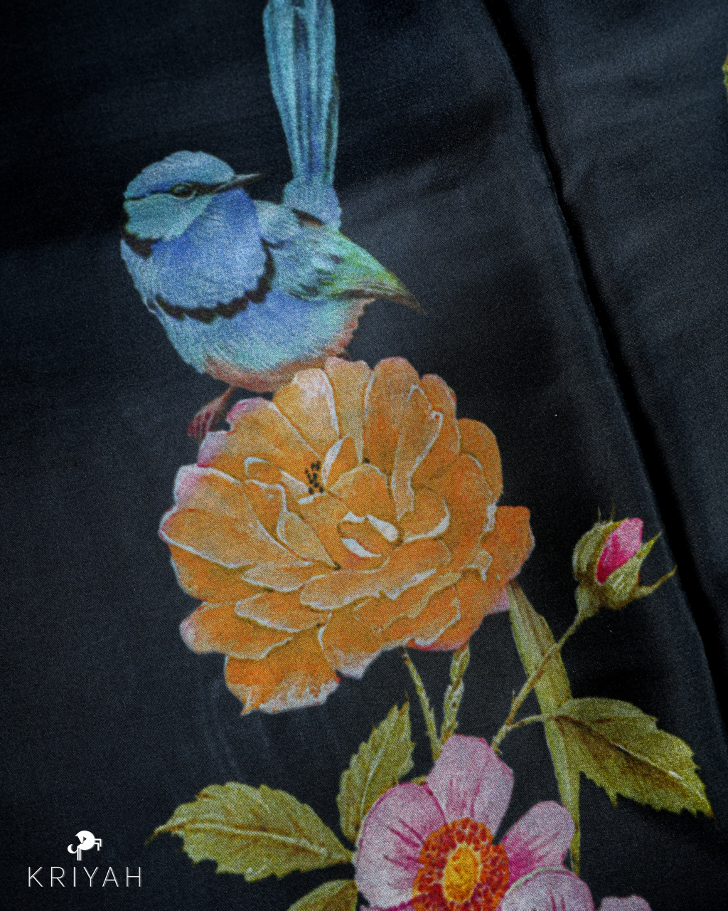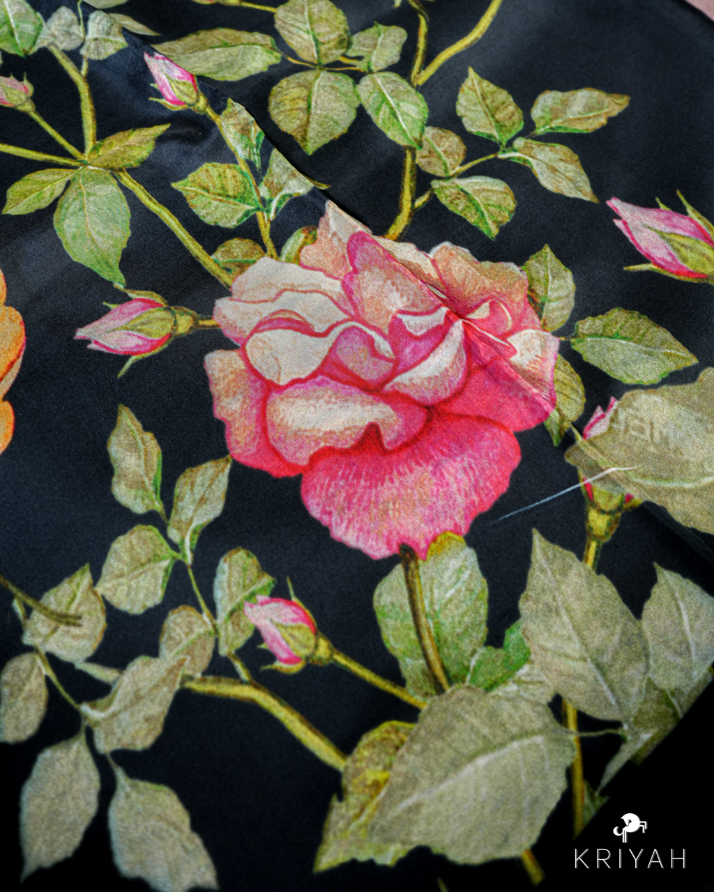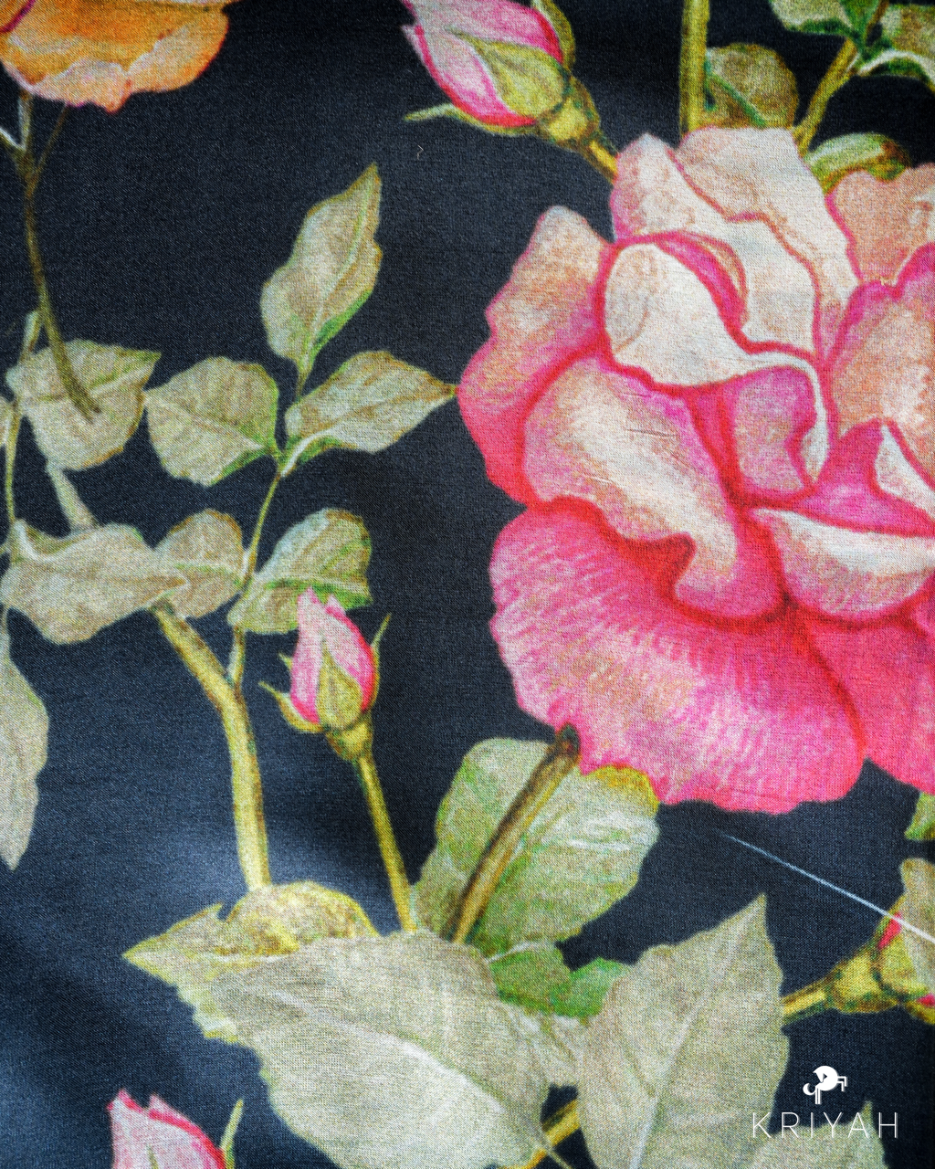 Maintenance: Dry clean only to preserve the silk’s sheen and print vibrancy.